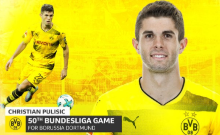 普利希奇成为了德甲50次出场最年轻的非德国球员