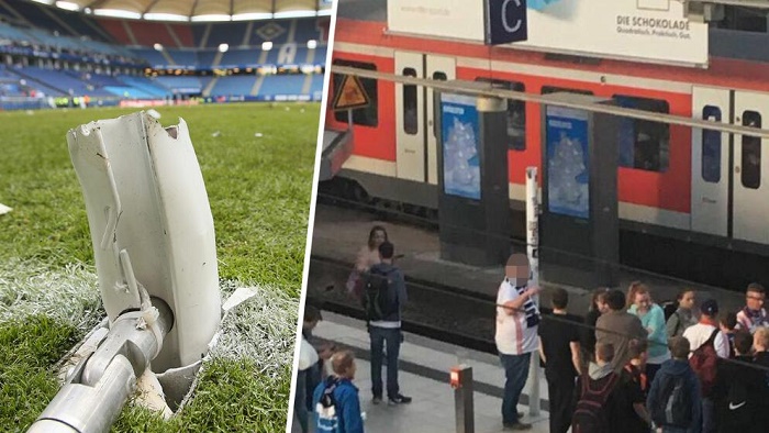 保级成功后疯狂的汉堡球迷涌入球场