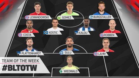 莱万、罗本、拉姆和科斯塔入选最佳阵。